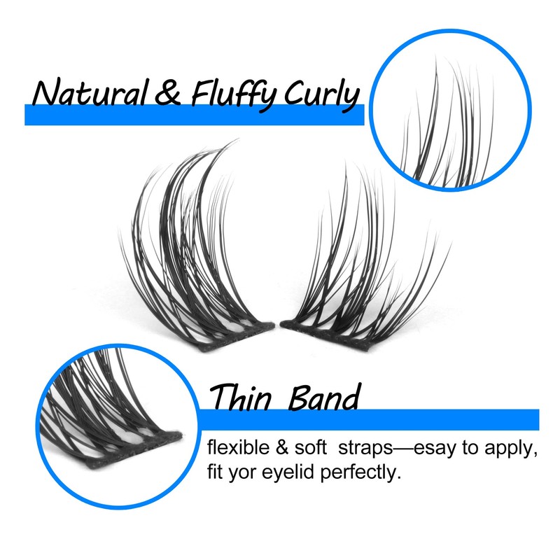 - Beginner Friendly: Fluffy individual false eyelashes paired with natural eyelashes are perfect for anyone who wants to try a bold and fresh look. You can choose these cluster lashes to DIY your own look. Even beginners can use cluster eyelashes to show off their beauty.