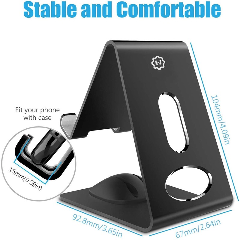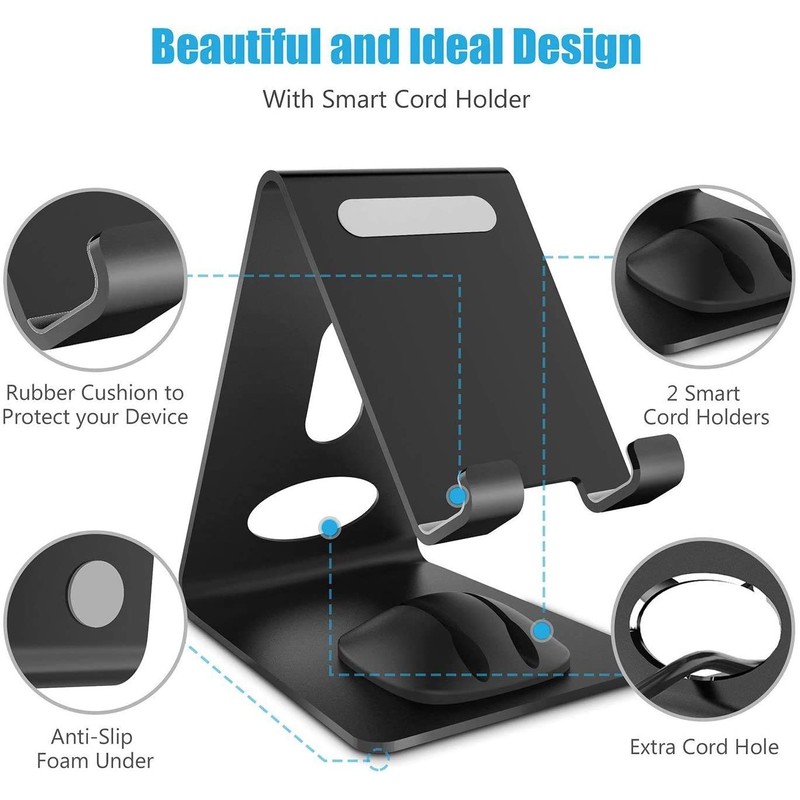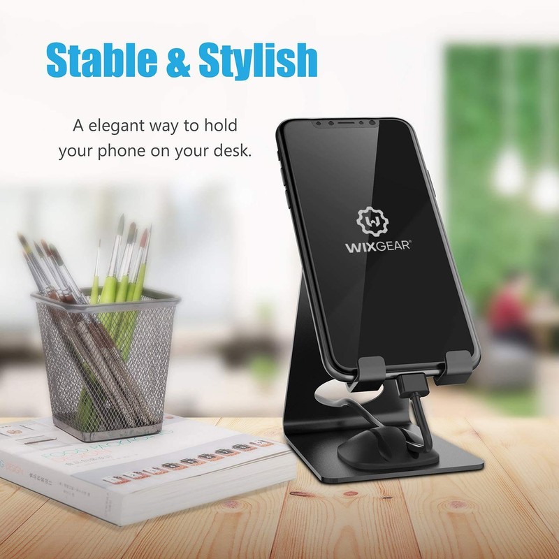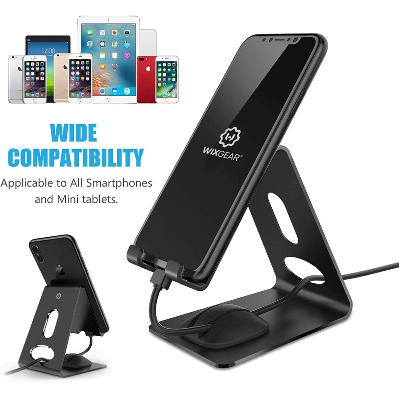 WixGear Cell Phone Stand Premium Phone Holder For iPhones Android Smartphones & Mini Tablets -Sturdy Metal Phone Stand For Desk with Smart Cord Holder System