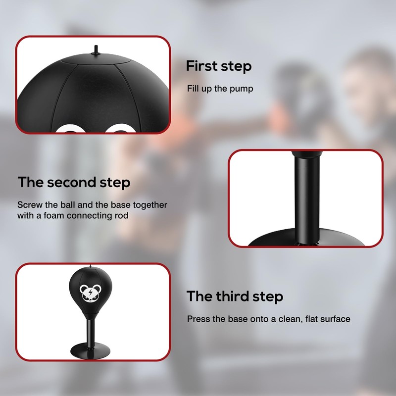 - Easy to install: thanks to the easy installation method, the desktop punching bag can be quickly attached to a table or other flat surface without complicated assembly.