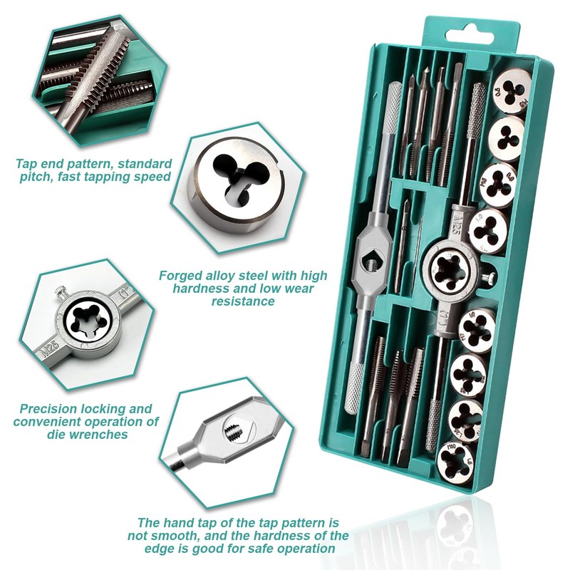 3. A total of 20 tool set, tap set complete specifications, equipped with practical tool box to meet your different needs.