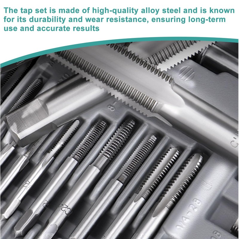 • High-quality materials: the thread cutter set is made of high-quality alloy steel, which is known for its durability and resistance to wear, which ensures long-term use and precise results.