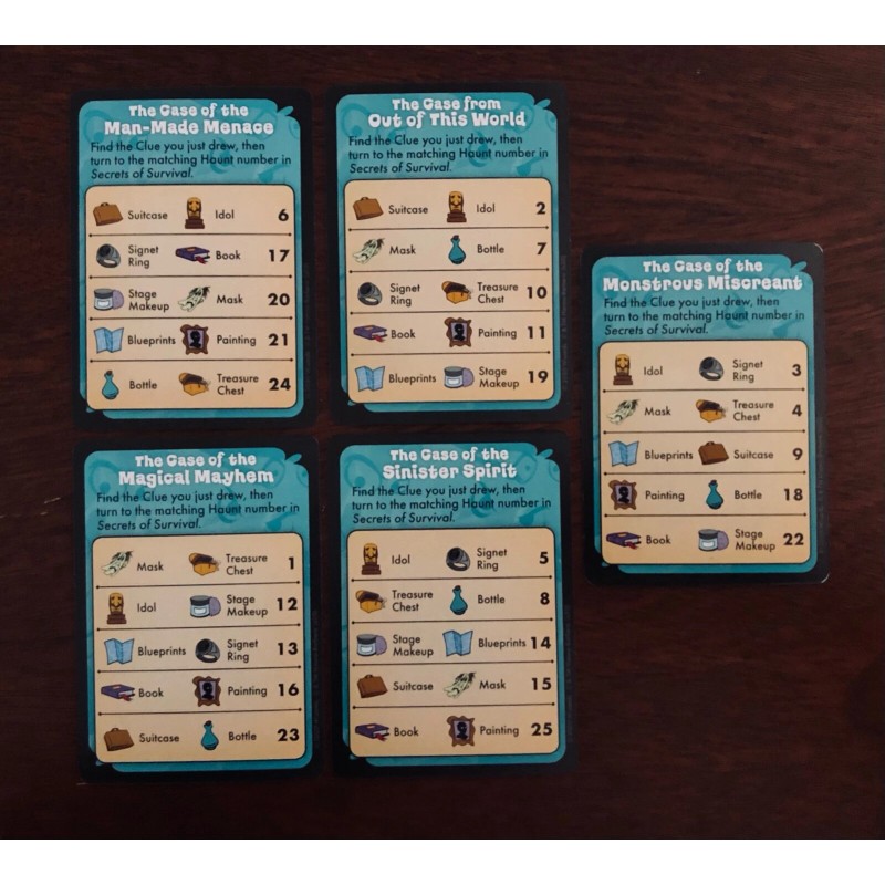 Wizards of the Coast Scooby-Doo Betrayal at Mystery Mansion | All 5 Case/Mystery Cards | Game Pieces