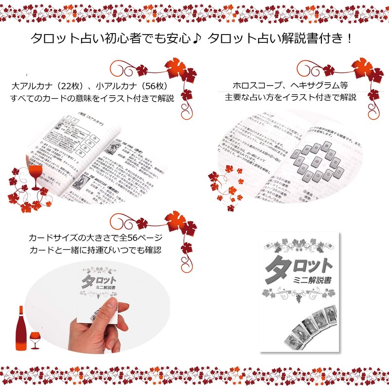 - Tarot Divination Mini Instruction Book (Basic knowledge of Tarot Cards, card explanation, and how to divinate, etc. This product is not an explanation book. 56 Pages)