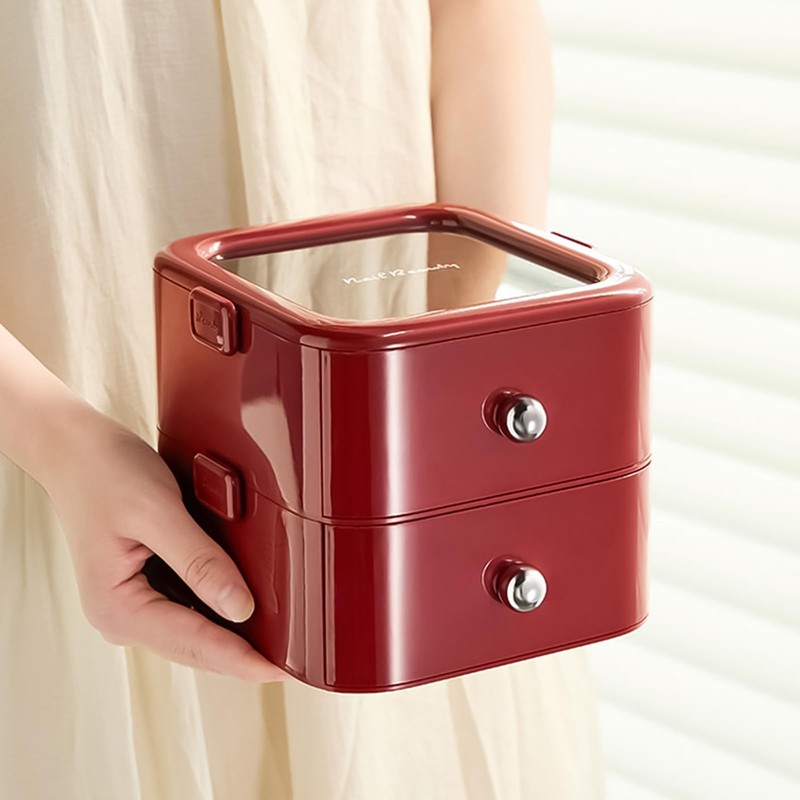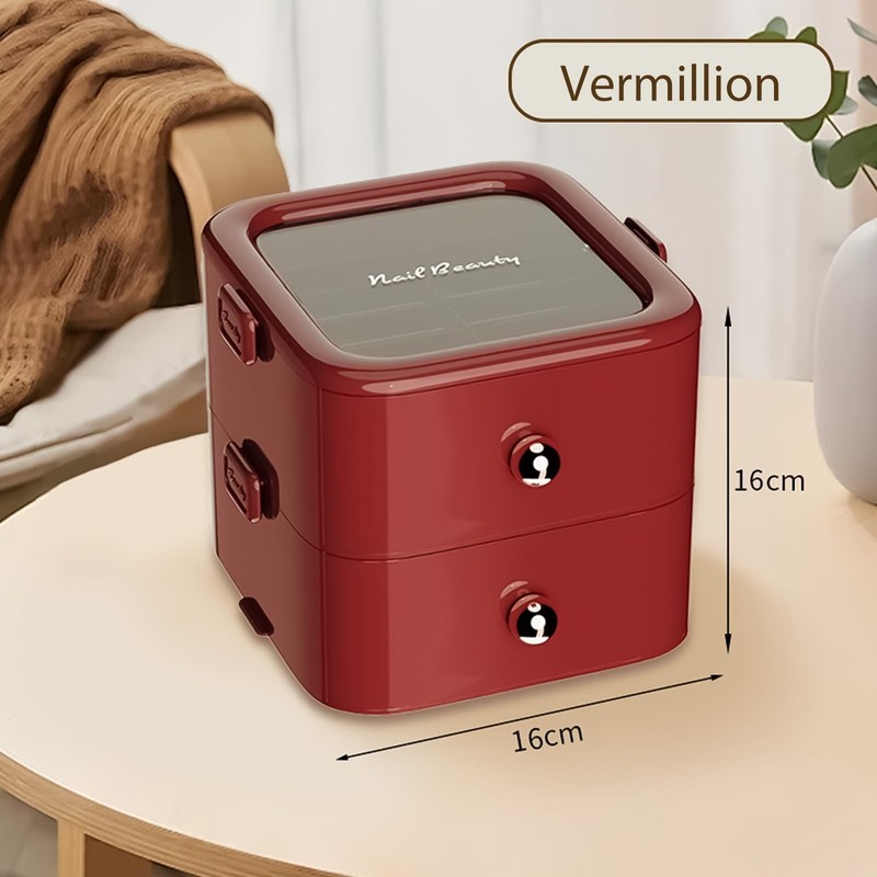 WIZIYION Double-layer Nail Storage Box, Large-capacity Display Box, Stores Nails, Accessories & Gifts (Red, 5x3x2.5 inches, 2 Count)