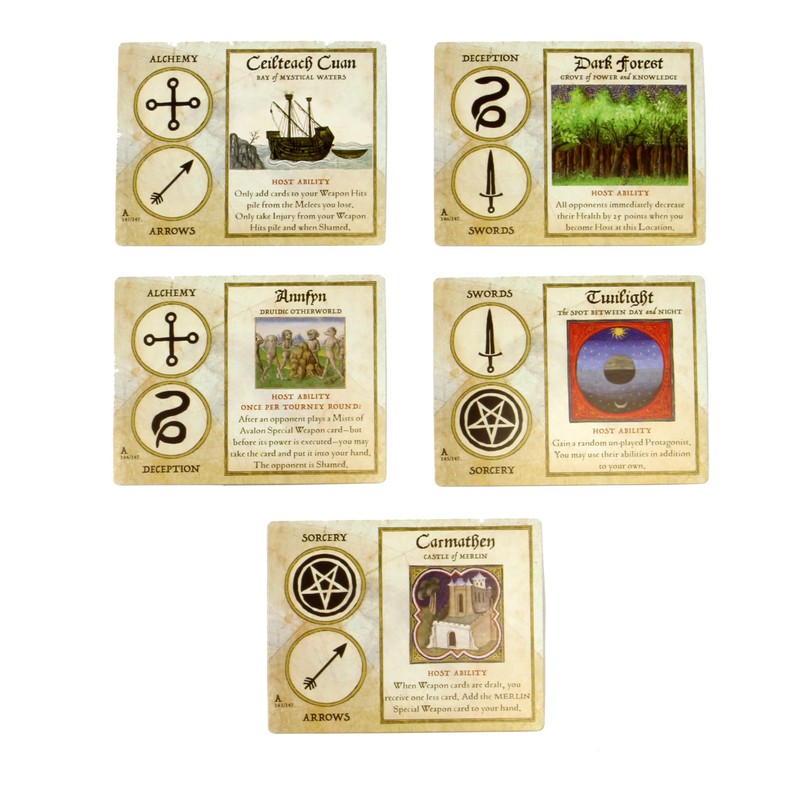 - In Tournament at Avalon, you’ll also have cards representing the legendary enchantress Morgan Le Fay, and a new set of Location panels, which grant additional advantages to a player when they are the host of a tournament round. And if you also have Tournament at Camelot, you can mix and match your favorite cards, playing with either ruleset or combine the two games to play an epic “Chaos of Battle” tournament with seven or eight players!