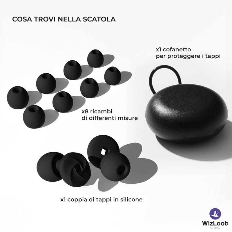 WizLoot Store - Ear Plugs for Sleeping, Noise Cancelling, Sleeping, Concerts, Work and Motorcycle Headphones Earplugs - SNR 33dB - Color Black | Obsidian Black