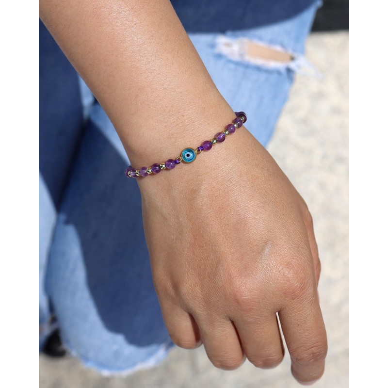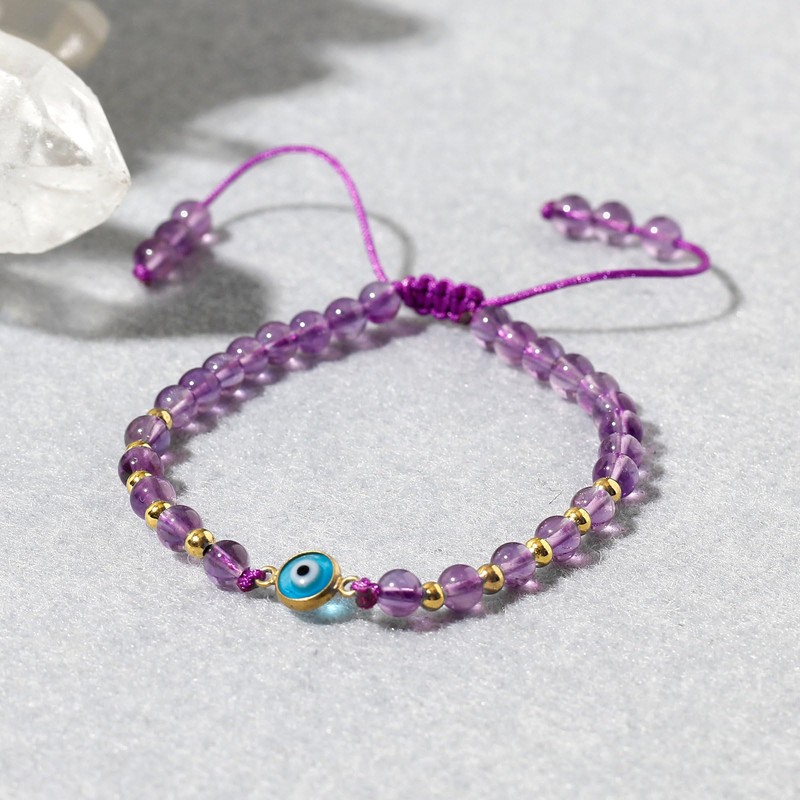 - Material: The protection bracelet is made of amethyst and has a bead diameter of 4 mm / 0.16 in, evil eye charm size: 11.8*6.6*2.8 mm (L*W*T), adjustable length: 15-18 cm / 6-7 in, suitable for most people's wrist size, weight: 4.9 g (0.17 oz)