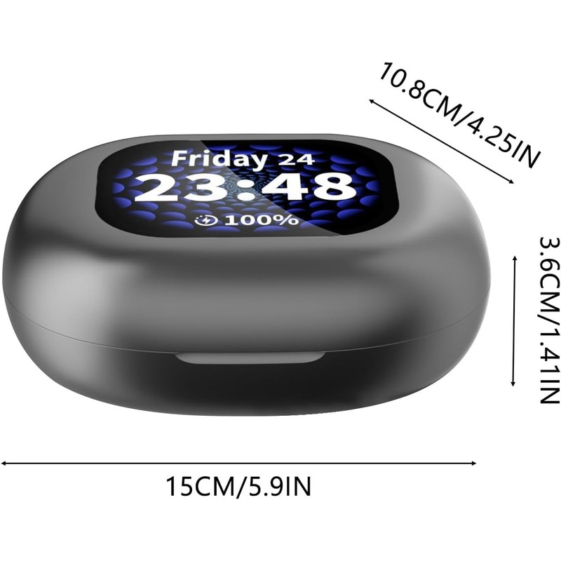 WJBCNEENT Open Ear Earbud Wireless Bluetooth 5.4 Earbuds,Intelligent Touch Screen Headphones,50H Playtime,Ergonomic Ear Hook,Built-in Mic,LED Display Charging Case,for Sport Running Fitness (Grey)
