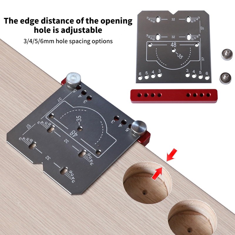 • Precise Hole Alignment: Designed for accuracy, this hinge jig features a three-in-one plate that aligns perfectly for common 40mm connecting rods. The eccentric wheel hole design allows for a 1.5mm adjustment, ensuring tight and secure.
