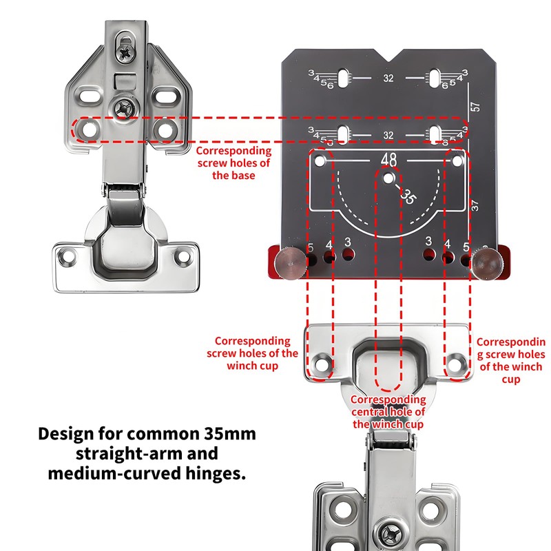 • Compatible with 35mm Hinges: This kitchen door handle jig is suitable for both 35mm straight arm and mid-bend hinges, making it a practical and versatile choice for woodworking and hinge installation tasks.