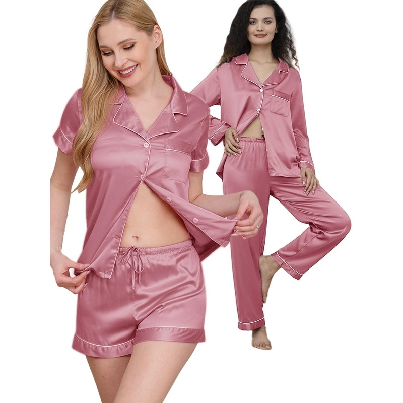 • VARIOUS OCCASIONS: Multiple matching methods to meet your daily wearing needs all year round: Short-sleeves top with shorts; Short-sleeves tops with long pants; Long-sleeves top with long pants; Long-sleeves top with shorts;. Comfy womens silky satin loungewear for sleeping and relaxing, pajama party, bridal night, girls' day, ladies night, honeymoon vacation, travel, and daily sleepwear.