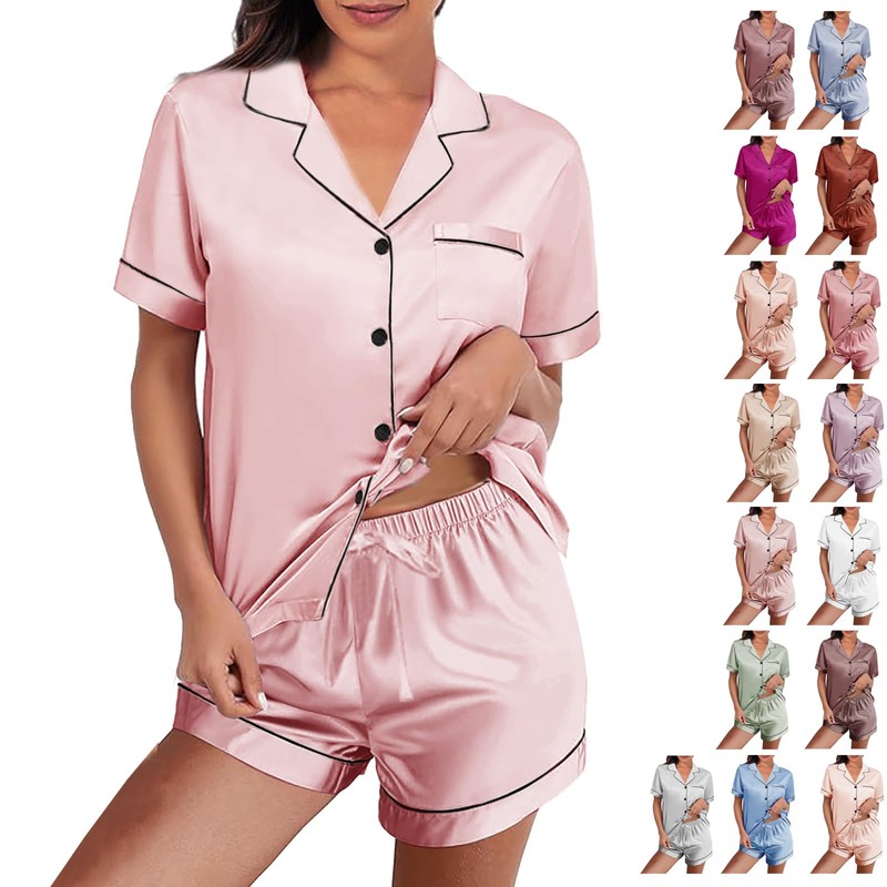 - Abundant colors and sizes: PLEASE ALSO NOTE: This womens satin pajama set short silk pajamas sets Pjs set sleepwear Pj sets Loungewear using premium silk satin material which is ultra soft and elegant. And total 8 SIZE RANGES: XS-S-M-L-XL-XXL-3XL-4XL; Multiple plain colorways, digital allover prints, jacquard patterns and sufficient sizes, elegant quality to satisfy the needs of you.