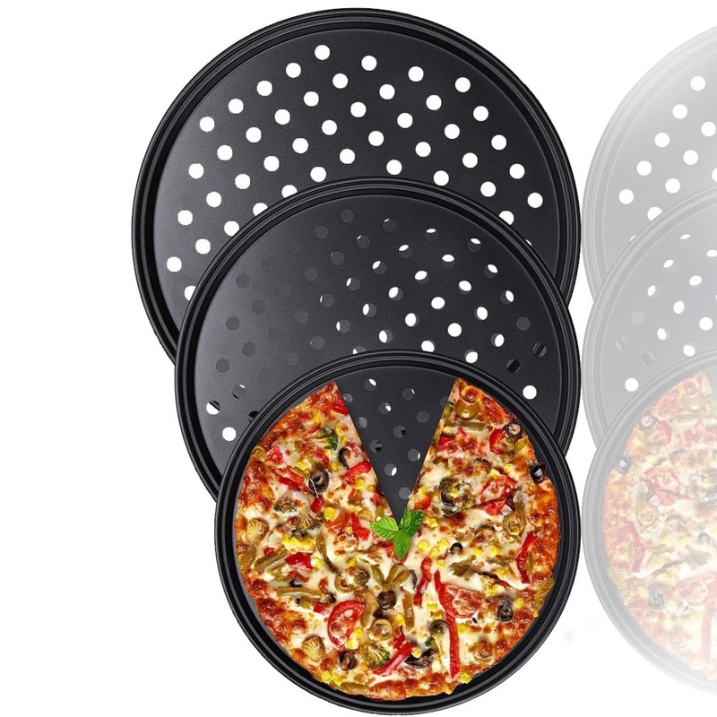- WJTZLBNSUY With crimped edges and perforated holes to make the pizza more crispy. Nonstick coating for effortless food release and easy cleaning.