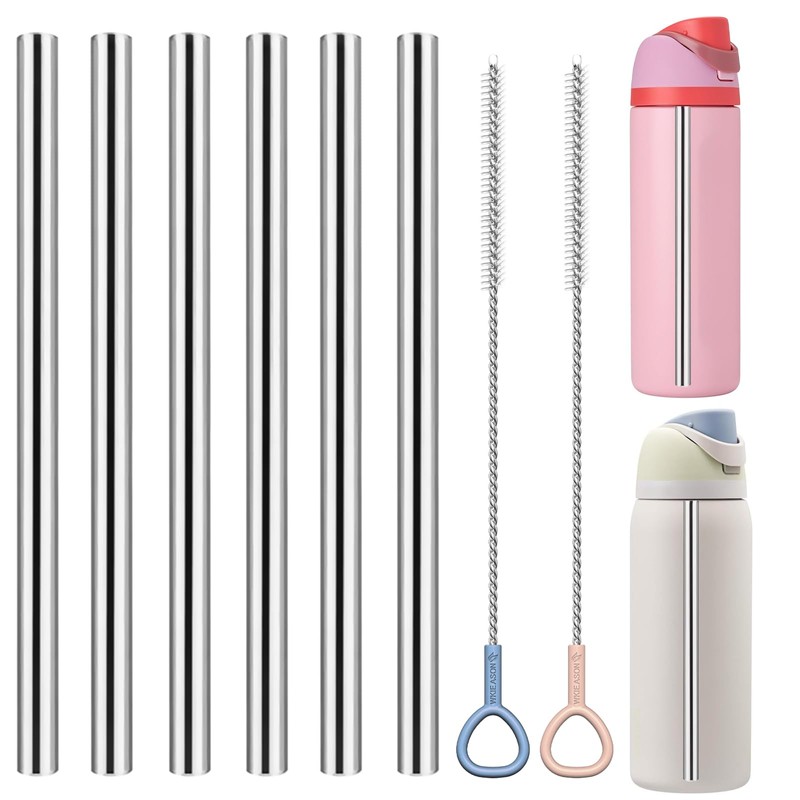 WK ieason 6PCS Reusable Straws for Owala FreeSip/Flip 24oz 32oz, Stainless Steel Straw As Owala Straw Replacement with 2PCS Cleaner Brushes