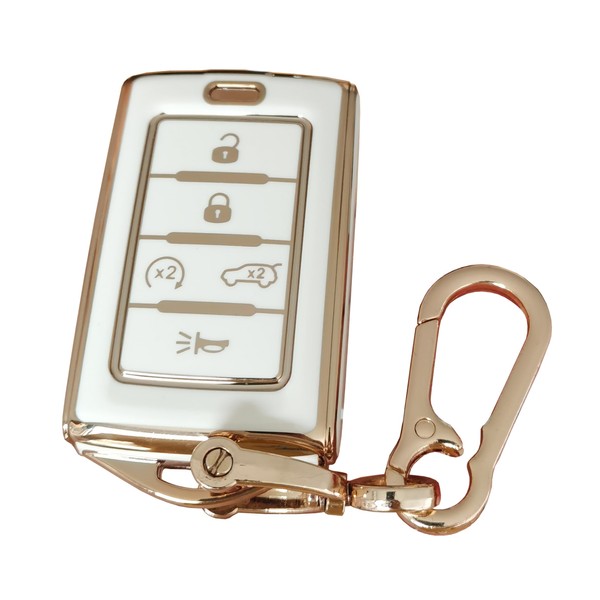 WKEDQAF TPU for Jeep Key Fob Cover Compatible with Jeep Grand Cherokee L 2022 Grand Wagoneer 2022 Wagoneer 2022 Grand Cherokee L 2021 (5-B White)