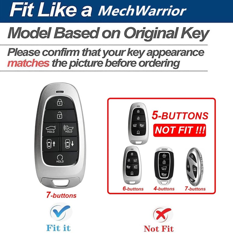 【Fitment】Heavy Zinc Alloy Metal Key Fob Cover with soft silicone rubber is compatible with 2020 2021 2022 2023 2024 Hyundai Sonata Santa Fe Nexo Tucson Palisade Etc 7-button car keys.Depending on the model and year of the car,the car key will vary.please refer to picture 2