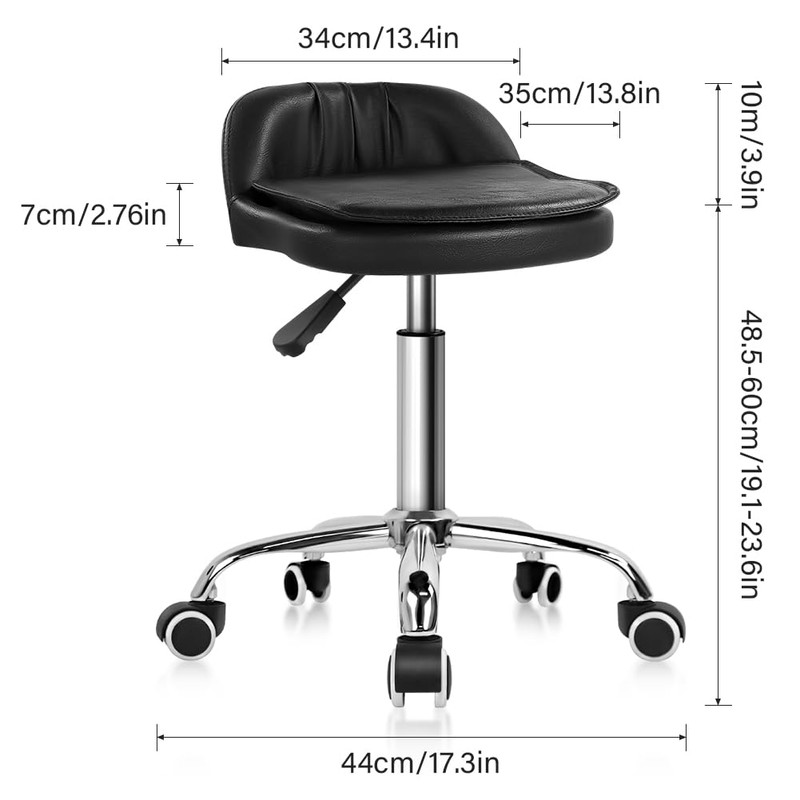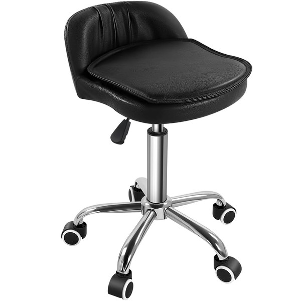 WKWKER Rolling Stool Swivel Stool with Wheels Height Adjustable Stool with Low Back Rolling Chair for Office Kitchen Desk Home Salon Shop Lab Counter (Black)