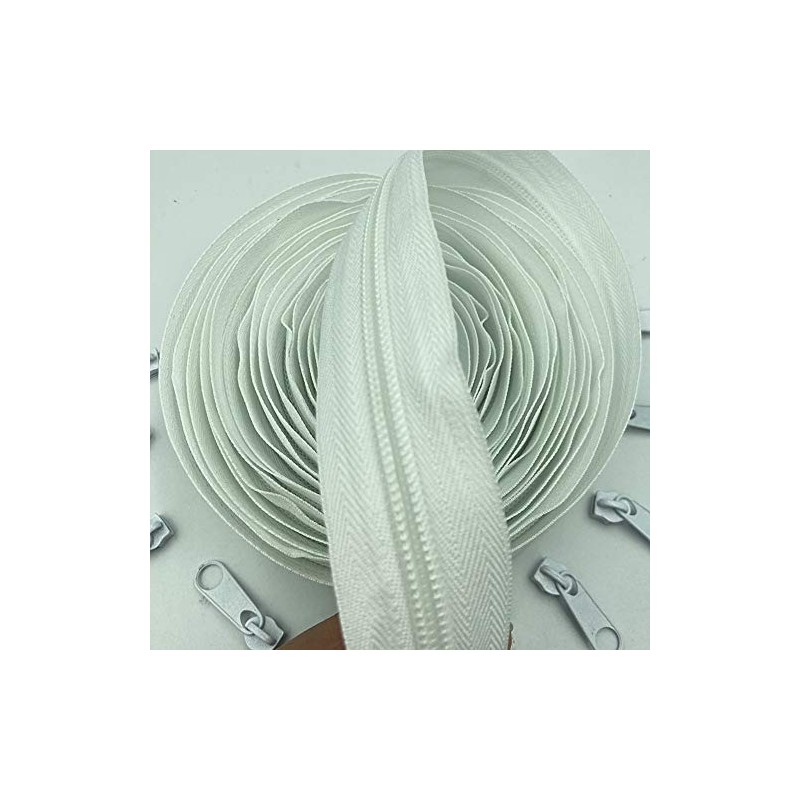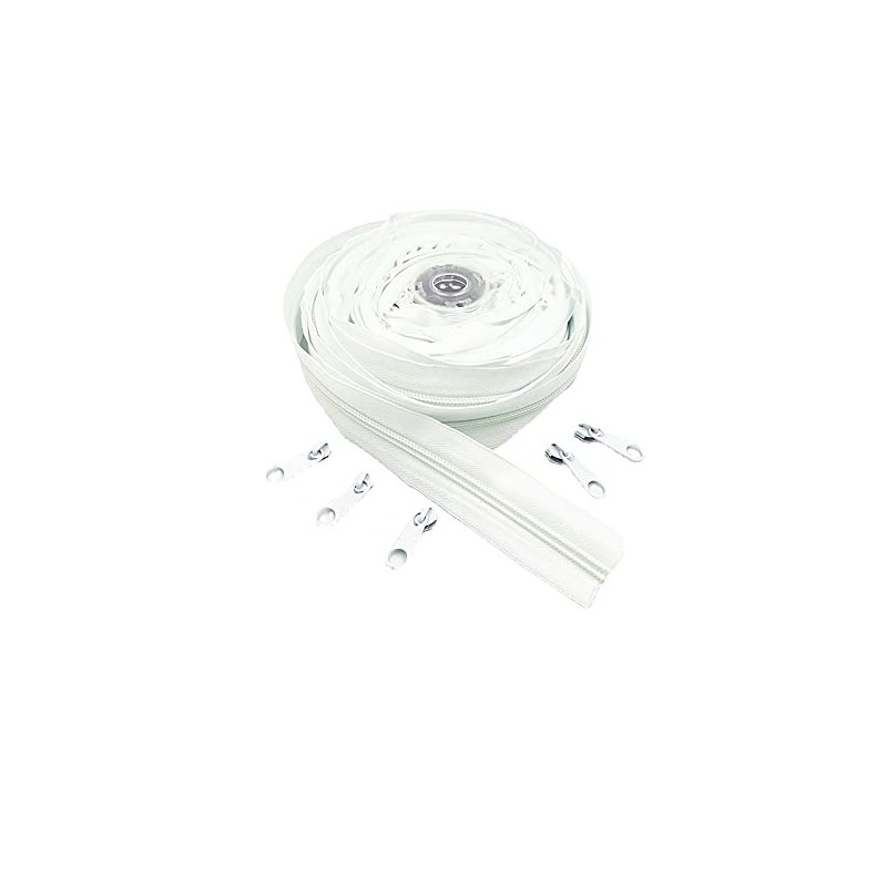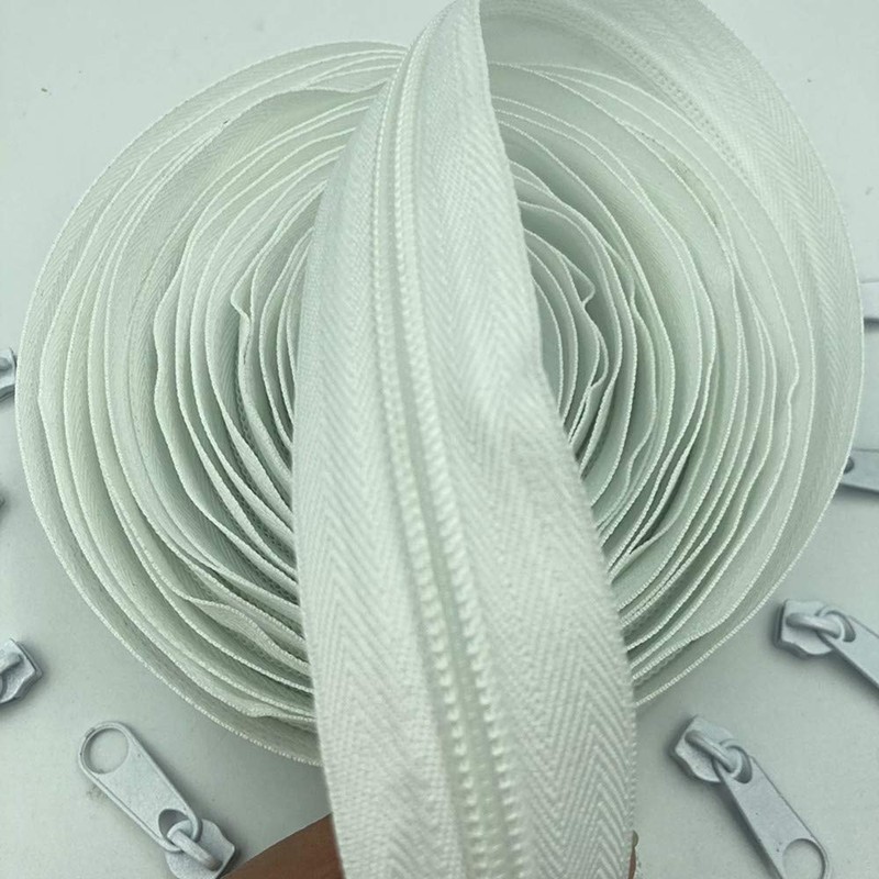 WKXFJJWZC 10 Metres (10.8 Yards) 5# Long Nylon Spiral Zipper with 20 Zipper Sliders for DIY Sewing Clothing Accessories (20 Colours) (White)