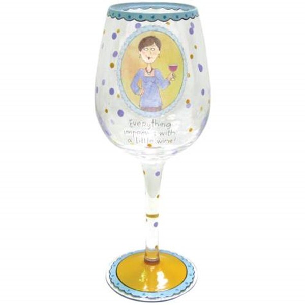 WL SS-WL-19617, Everything Improves Inscription Wine Glass with Chic Woman Decoration