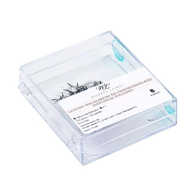 - Varvi-Fächer: Diese Wimpern kommen in Form von Varvi-Fächern, bestehend aus 8 einzelnen Wimpern unterschiedlicher Länge. Dank ihnen können Sie den Effekt Ihren eigenen Vorlieben anpassen.