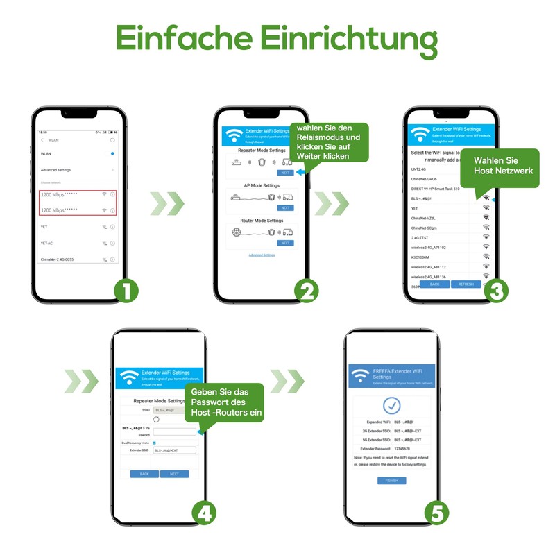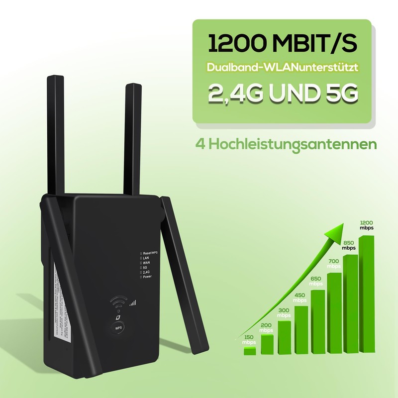 WLAN Repeater WLAN Amplifier 1200 Mbit/s Dual-Band WiFi Booster with Repeater...