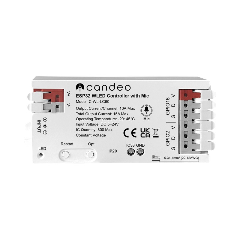 WLED Smart LED Strip Controller with Mic, uses WLED app, Sync with Alexa, Home Assistant, Hubitat. Dynamic RGBIC Lighting Effects, Music Sync, Easy Wiring for WS2811 WS2812 SK6812 TM1814 WS2813 WS2815