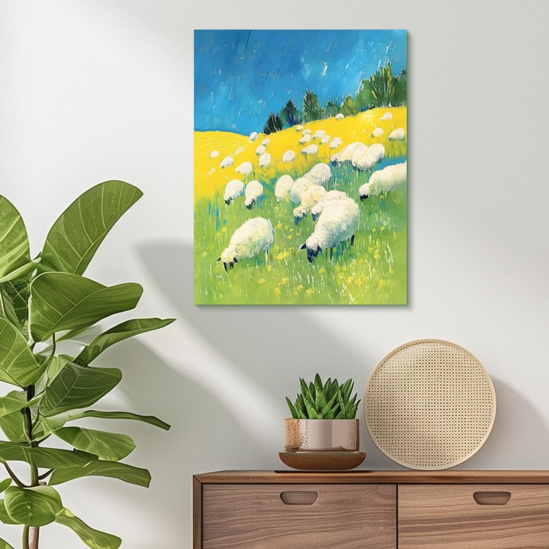 - 【Serene Sheep Grazing in a Field】: The third framed print depicts a group of serene sheep grazing in an open field under a clear blue sky. The lush grass and bright sunlight highlight the sheep’s white wool, creating a picturesque scene that brings a sense of peace and relaxation. This framed canvas print is an excellent choice for kids wall art, boys bedroom, and girls bedroom decor.
