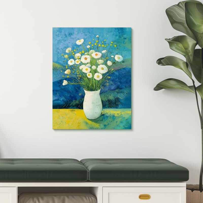 - 【Elegant White Vase with Flowers】: The second framed print features an elegant white vase adorned with a bouquet of flowers. The gentle brushstrokes and soothing pastel tones create a serene atmosphere, perfect for enhancing the aesthetic of any room. This framed canvas print pairs well with flower wall art, nursery wall decor, and toddler room decor.