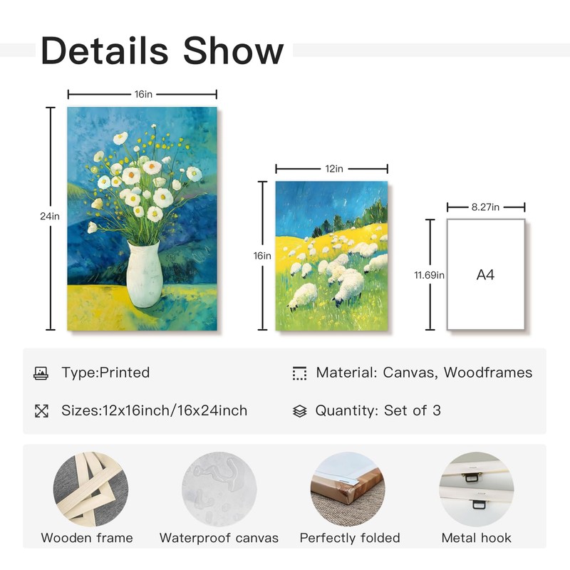 - 【Van Gogh Inspired Framed Art】: This set includes three beautiful 16x24 inch framed canvas prints inspired by Vincent van Gogh’s style, featuring delicate brushstrokes and soft pastel colors. Each print captures a different serene scene, perfect for adding a touch of tranquility to your living room, bedroom, or office decor.