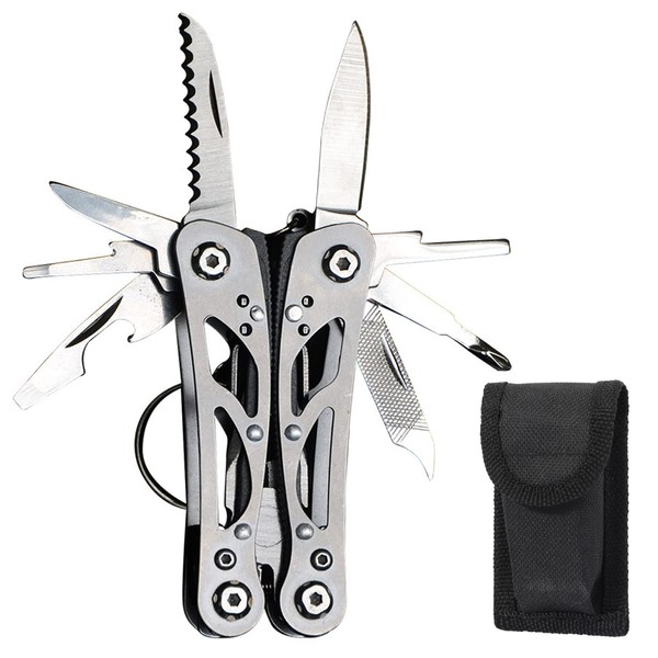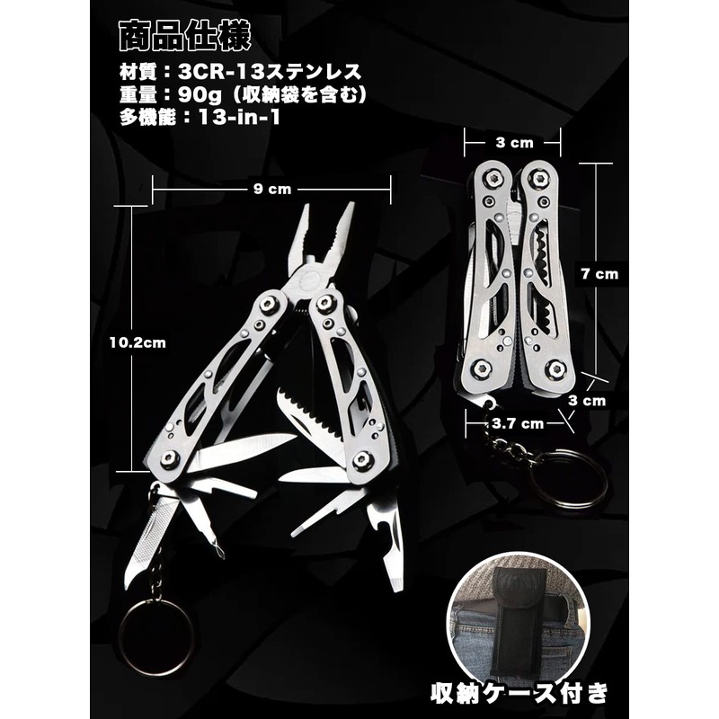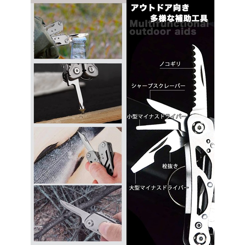 - (13-in-1 MINI Multi-functional Knife) Compatible with standard pliers, pliers, wire cutters (cutting target: φ0.04 inch (1 mm) hardness, HRC30), straight blade, saw, screwdriver, bottle opener, medium slotted screwdriver, large slotted screwdriver, small flathead screwdriver, metal file, sharp scraper, key holder, camping, fishing, walking and other outdoor activities