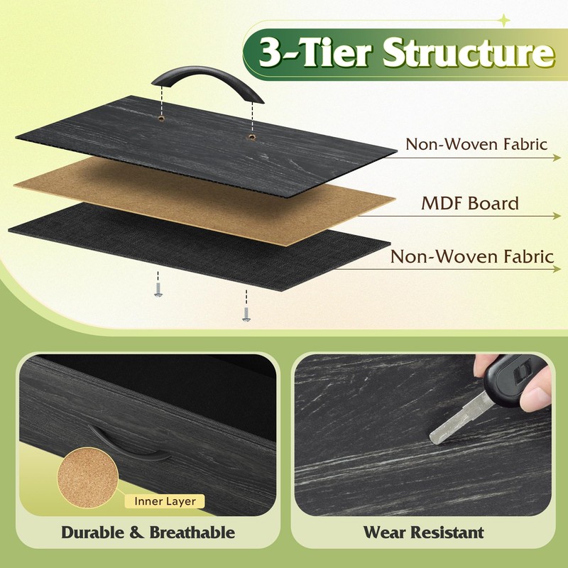 - ăâš Durable Quality MaterialăThe drawer surface is composed of three layers of high-quality fiberboard and breathable non-woven fabric, the woodtop is made of P2 grade artificial wood, scratch resistant and easy to clean, the material process and safety are strictly tested by EPA&SGS, health and environmental protection, excellent quality for you and your family to create a peaceful life!