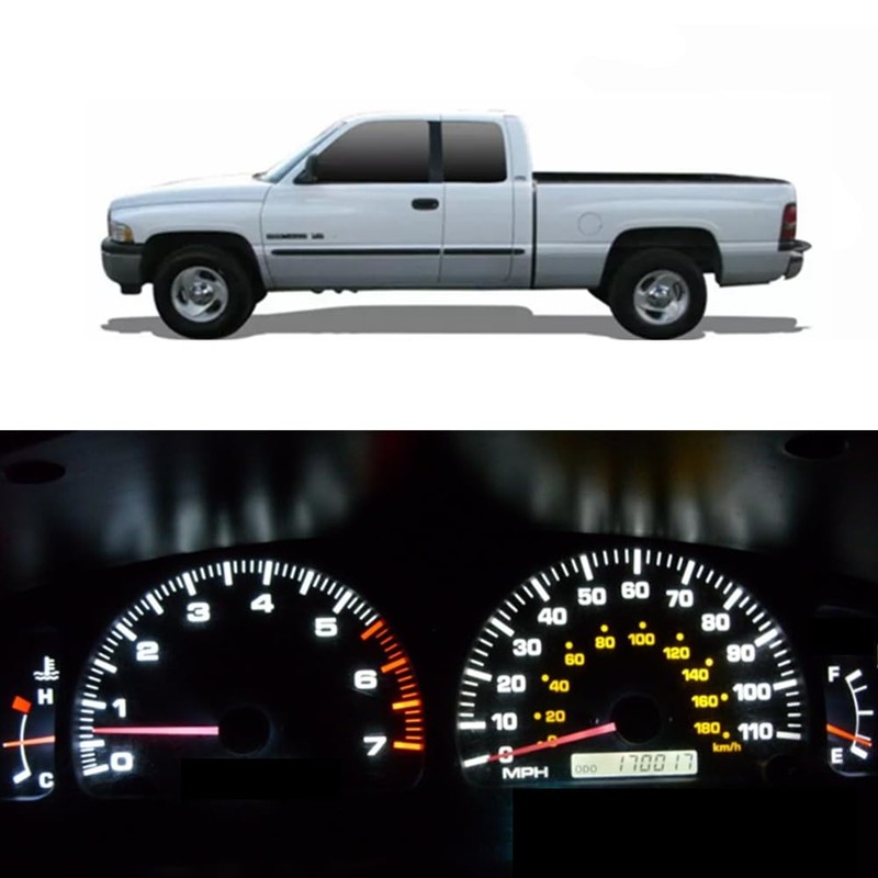 - Fit Vehicle: This kits is special for dodge ram 1500 2500 3500 1994-2001 instrument panel gauge dash cluster led light bulb,included 20pieces bulbs, covers all the lights on dash cluster.