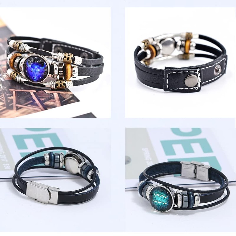 - MATERIAL:High quality leather,bracelet buckle use sturdy stainless steel,zodiac charms are glass.The size can be adjusted freely, suitable for most people.