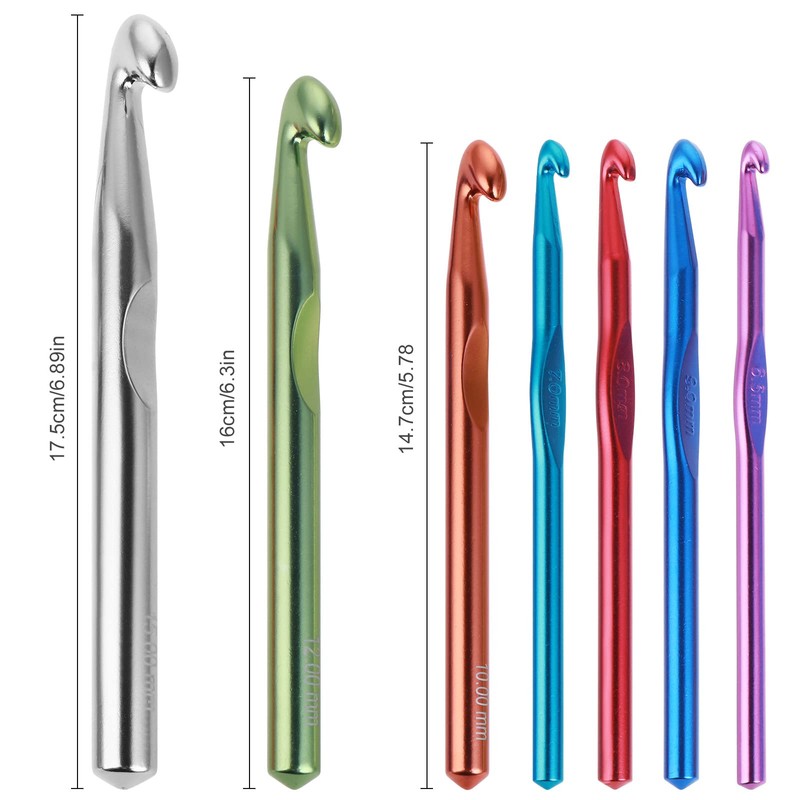 - 【Multiple Sizes】The crochet hook set contains 7 sizes: 6.5mm, 7.0mm, 8.0mm, 9.0mm, 10.0mm, 12mm and 15mm. Knitting needle set is a great crochet starter kit