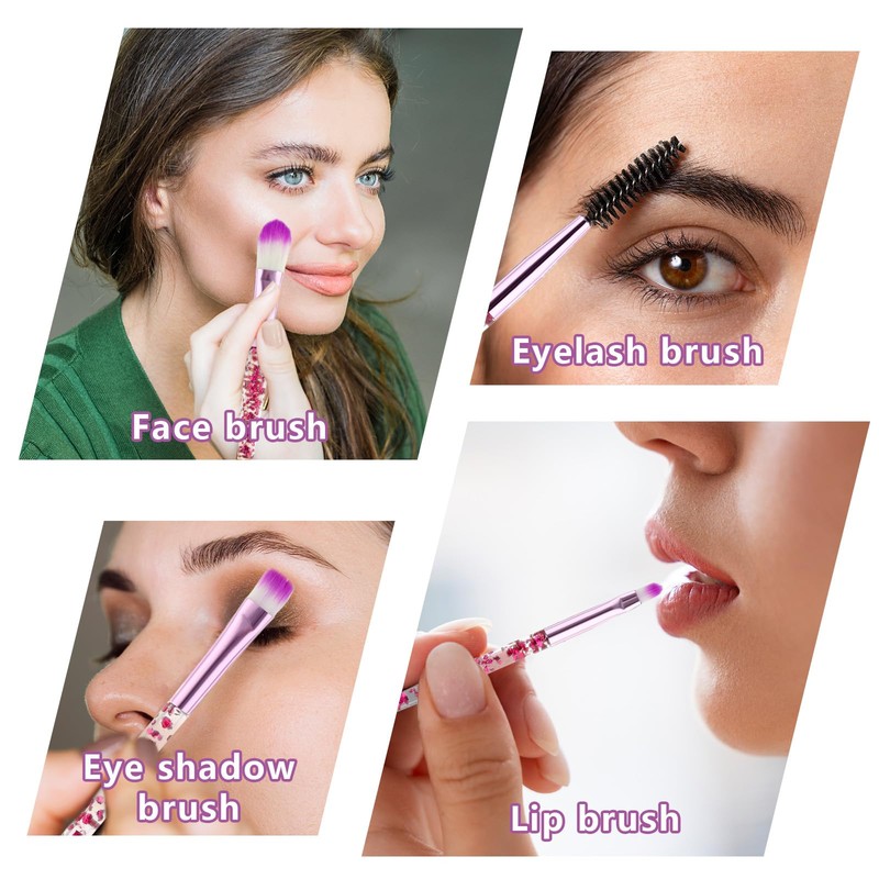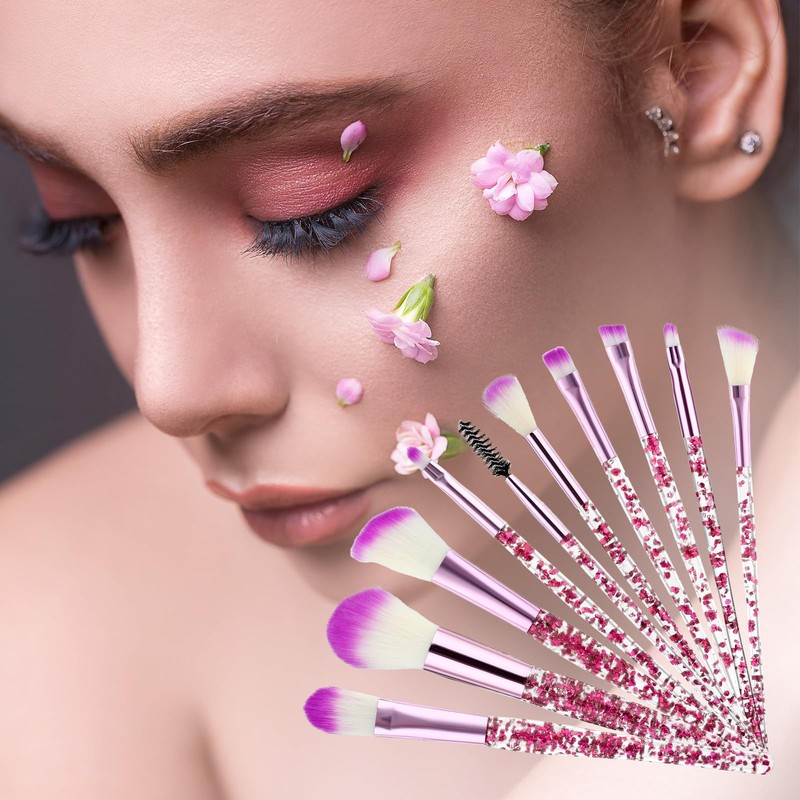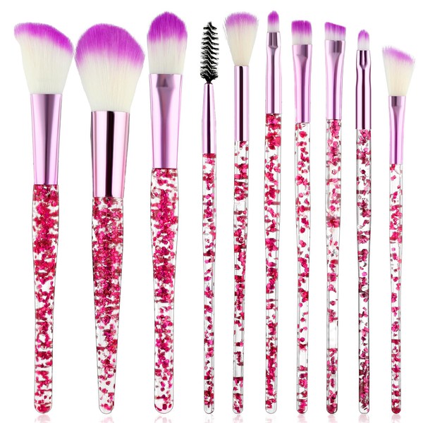 - VALUE SET A set of ten glitter makeup brushes just for you. The cute makeup brush set includes eyebrow brush, concealer brush, lip brush, nose shadow brush, eye shadow brush, blending brush, angled eyebrow brush, foundation brush, powder brush, makeup artist kit essentials with different functions are tailor-made for you. With WLLHYF glitter makeup brushes, you can confidently create beautiful makeup