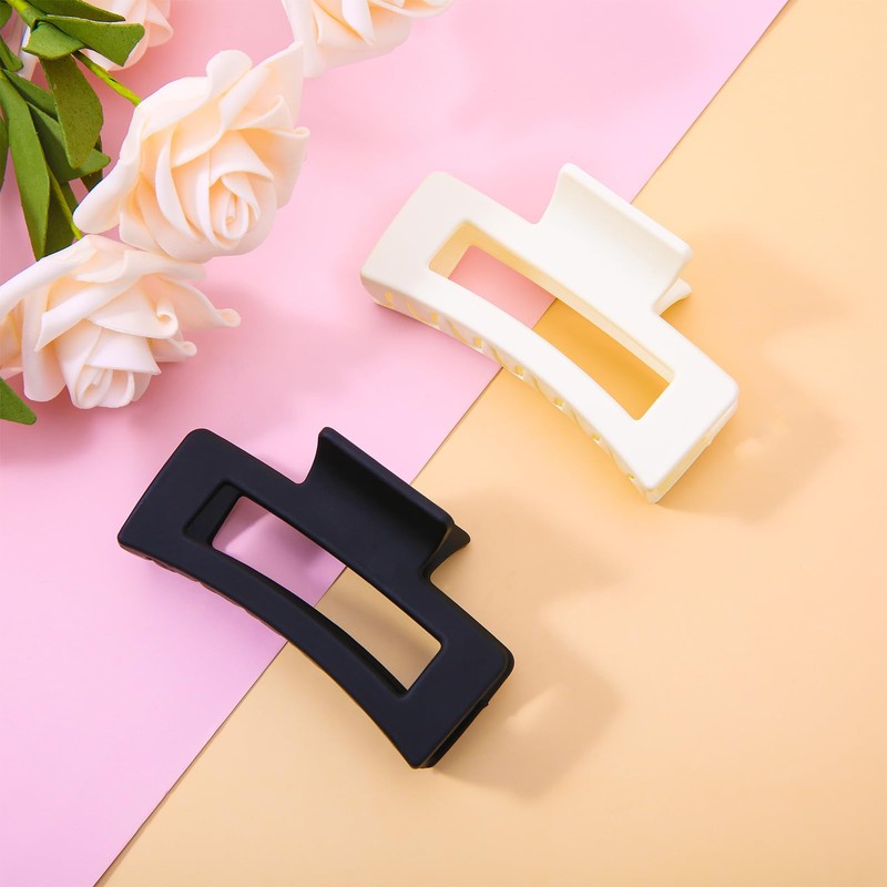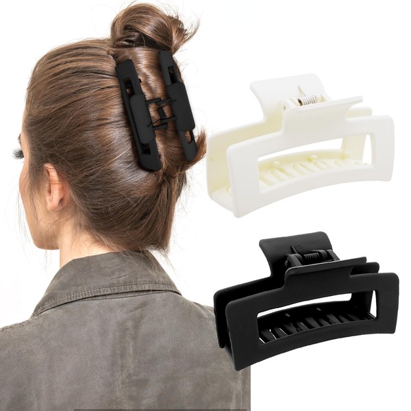 WLLHYF Square Claw Clips, Pack of 2, 8.5 cm, Medium Hair Clips, Matte, Non-Slip, Fashionable, Strong Hold, Banana Clips, Hair Styling Accessories for Women and Girls, Thick Thin Hair (White, Black)