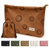 WLLWOO - Bolsa de maquillaje, 2 unidades, cara sonriente, bolsa de cosméticos de pana con cierre, interior impermeable, estuche para monedas, artículos de aseo de viaje, bolsa de maquillaje pequeña para mujeres, Marrón