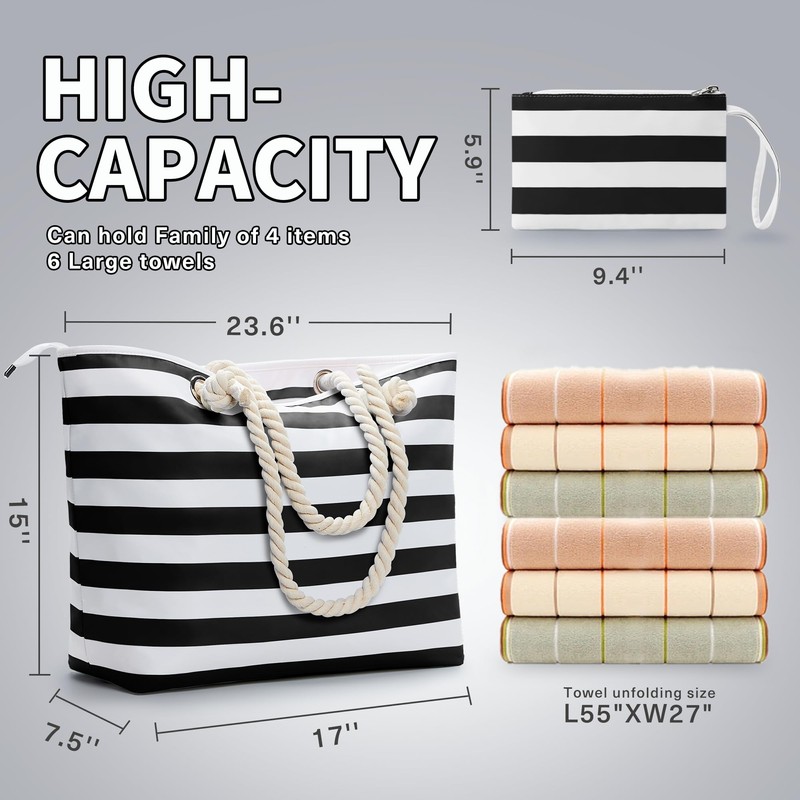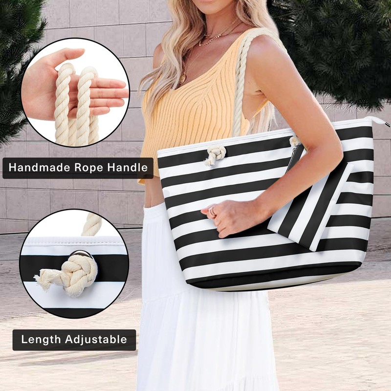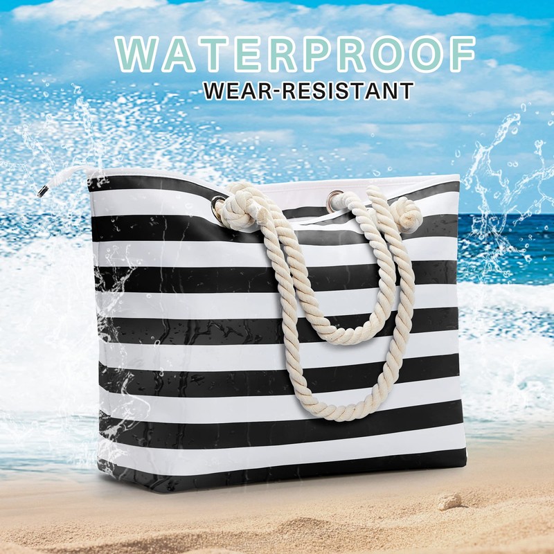 WLLWOO - Bolsas de playa para mujer, extragrande, impermeables, a prueba de arena, bolsa de natación para piscina, bolsa de playa para día festivo, Negro&blanco, X-Large