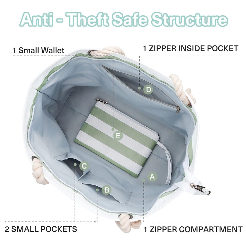 - ☀【Ampliamente utilizado】Otro gran aspecto de la bolsa de playa es su versatilidad. Bolsa de playa con diseño de cierre, bolsa con bolsillos y compartimentos internos. Se puede utilizar en una amplia gama de escenarios de uso. Ya sea que vayas a la playa para tomar el sol, o ir de picnic, viaje de campamento para empacar tus bolsos, o al gimnasio, esta bolsa es la opción perfecta
