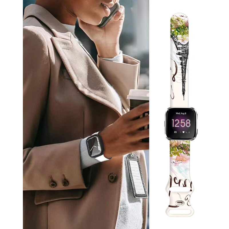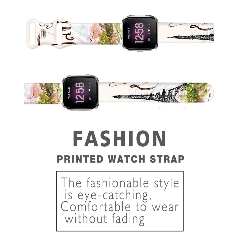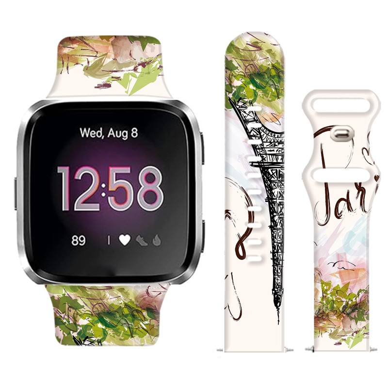 WLPFSAHF Watch Bands Compatible with Versa 2/Versa, Soft Silicone Cute Fadeless Sport Strap Replacement for Women Men, Eiffel Tower Paris Floral