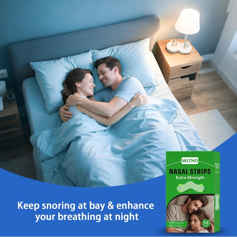 WLTHO 50ct Nasal Strips for Snoring Clear Nose Strips for Breathing & Sleeping Extra Strength Drug-Free Snore Strips to Relieve Nasal Congestion