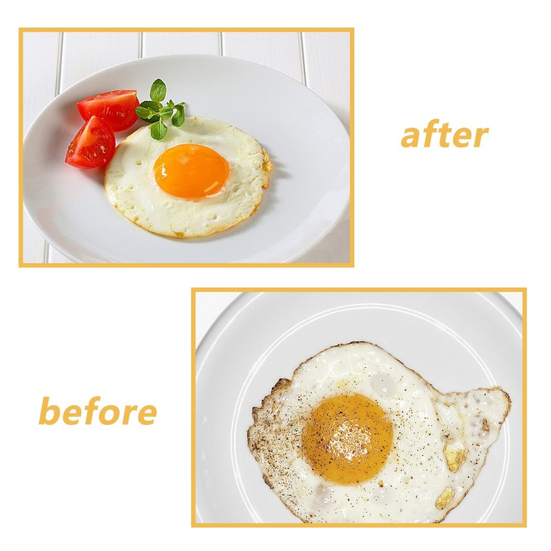 - Easy to Use and Clean Brush the pan and inner wall of the egg mold with cooking oil, place the ring in the pan, beat the eggs into the ring, and wait for the egg to cook. Pancake pan with non-stick coating, is very easy to clean, just use detergent and water for easy cleaning.