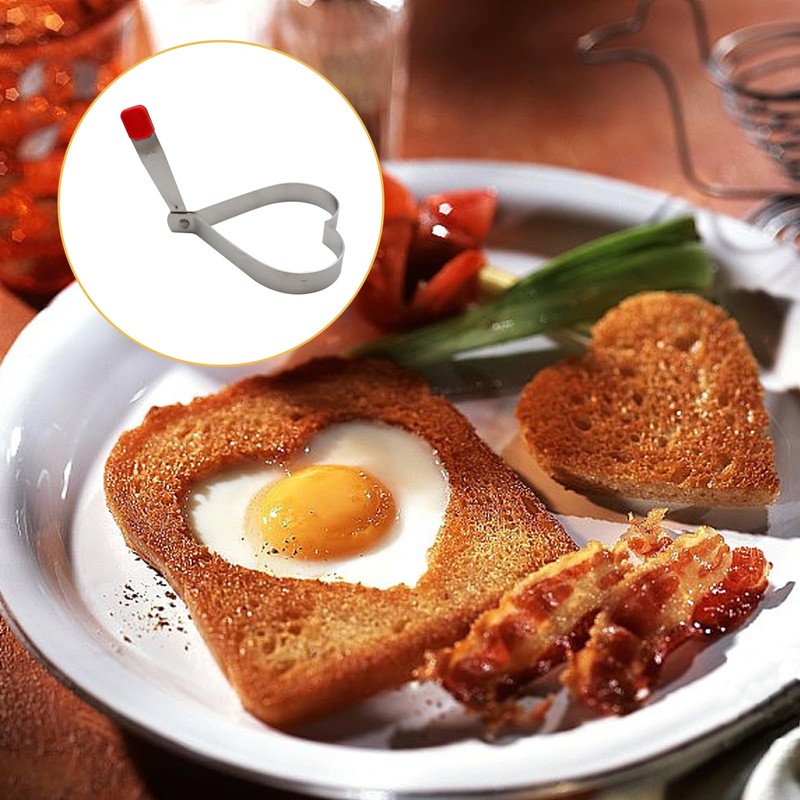 - Anti-scald handle: fried egg mold with folding handle and silicone cover, which not only provides a comfortable grip, but also prevents burns. The handle folds down, is easy to store and does not take up space.