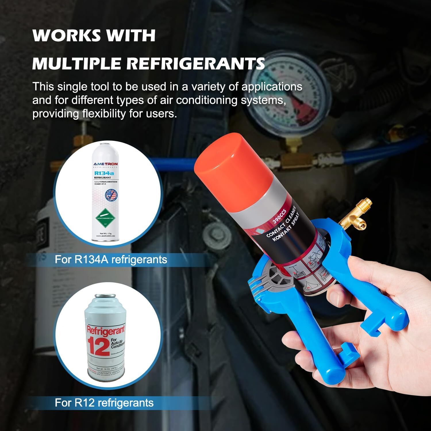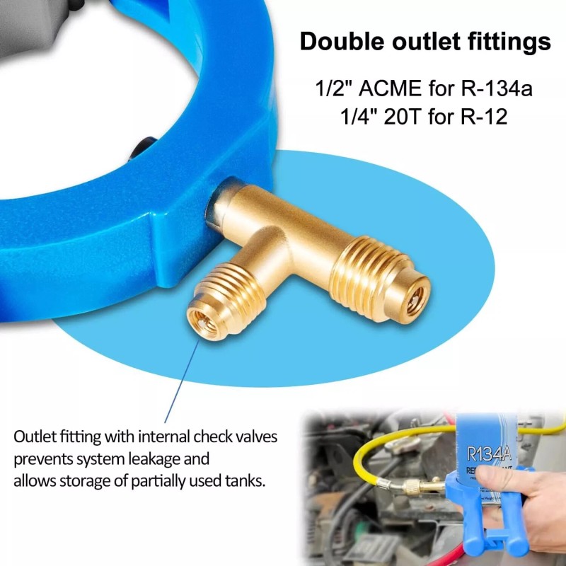 - 【Works with】 It is designed to work with both R134A and R12 cans, providing flexibility for users who may be working on systems that use either of these common items. This allows for a single tool to be used in a variety of applications and for different types of air conditioning systems.
