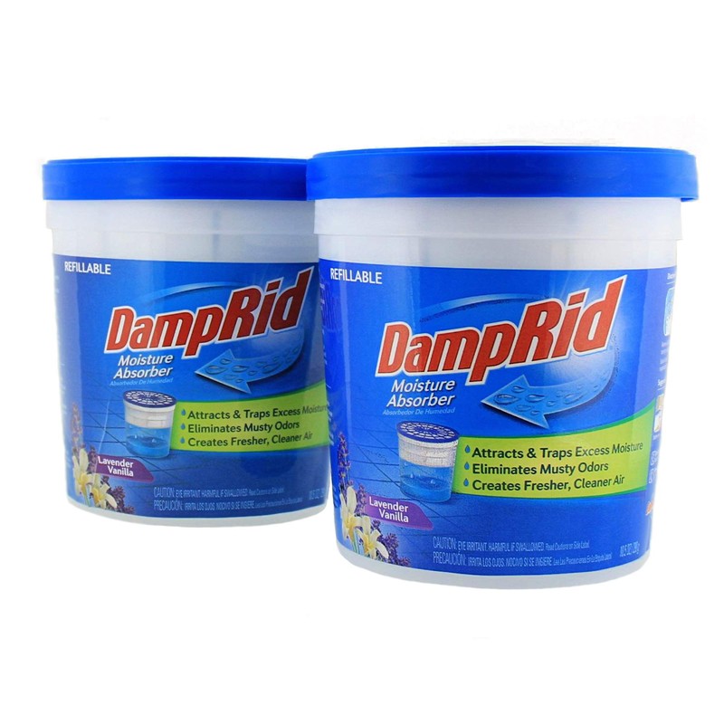 The DampRid 2 Pack Refillable Moisture Absorber Cups are your solution for continuous cleaner, fresher air. This musty odor eliminator works by attracting and trapping excess moisture to maintain an optimal humidity level. Works wonders as a closet deodorizer, freshener, or odor neutralizer wherever moisture in an issue. Use this multipack one at a time for long-lasting freshness or spread them out between the bathroom, laundry room, kitchen, home office, basement, garage, stored boat, or RV. To use this convenient odor absorber, simply open the bag of crystals, pour into the top tray of the canister and close lid. When the odor absorbing crystals have dissolved, dispose of the water by pouring into a toilet, then refill with new crystals. These air deodorizer odor eliminator cups are available in Fragrance Free, Fresh Scent, Lavender Vanilla, and Pure Linen. Keep out of reach of children. Read and follow all label directions.