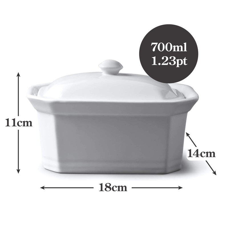 • Premium quality white porcelain serving dish designed to hold and serve pté, butter or margarine.