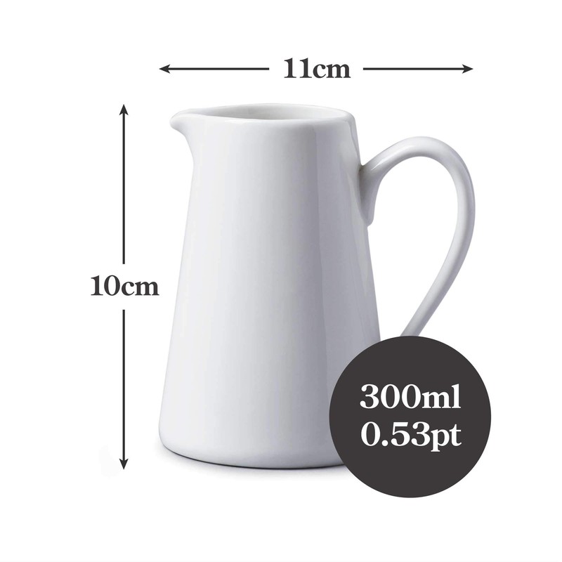 • A premium quality white porcelain ceramic jug. Ideal for serving milk, cream, custard, gravy and more. For breakfasts, desserts, tea time or high tea in the garden and drinks.