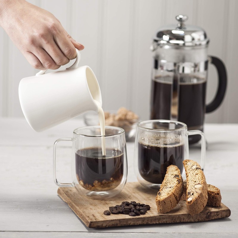 • Ergonomic handle provides a secure grip for direct pouring. Perfect for holding and serving all hot and cold liquids.