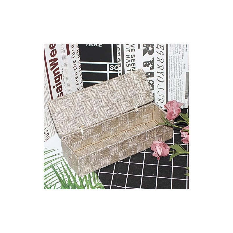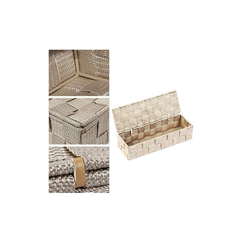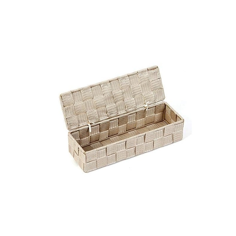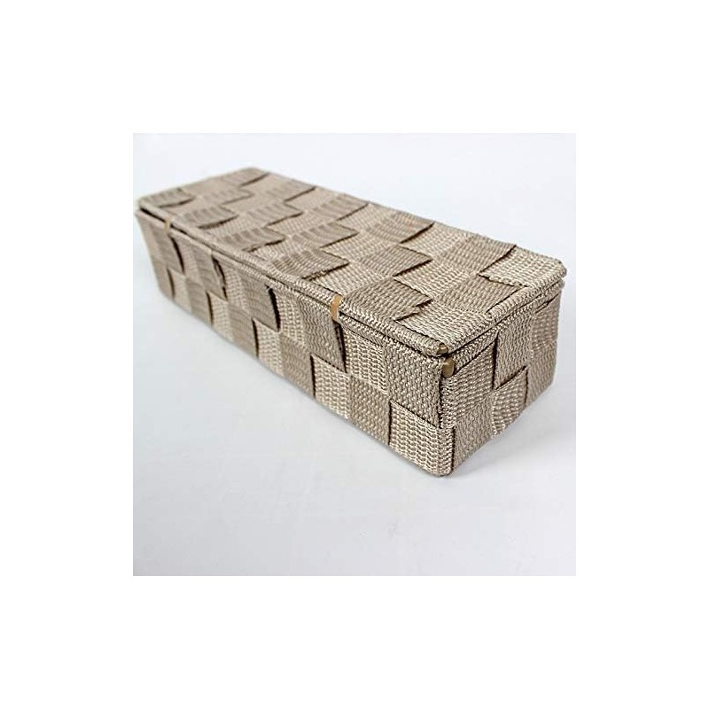 Braided Storage Basket Polypropylene Bathroom Basket with Lid Rectangular in Beige 26 x 8.5 x 6 cm