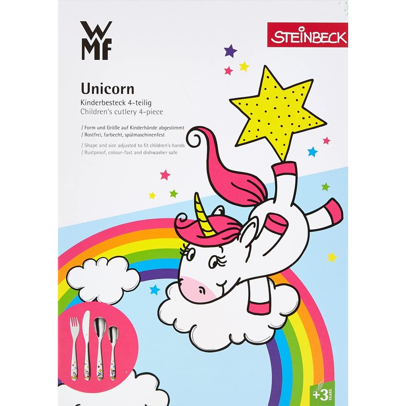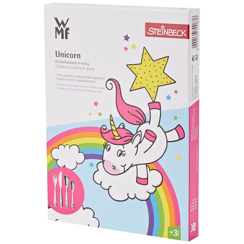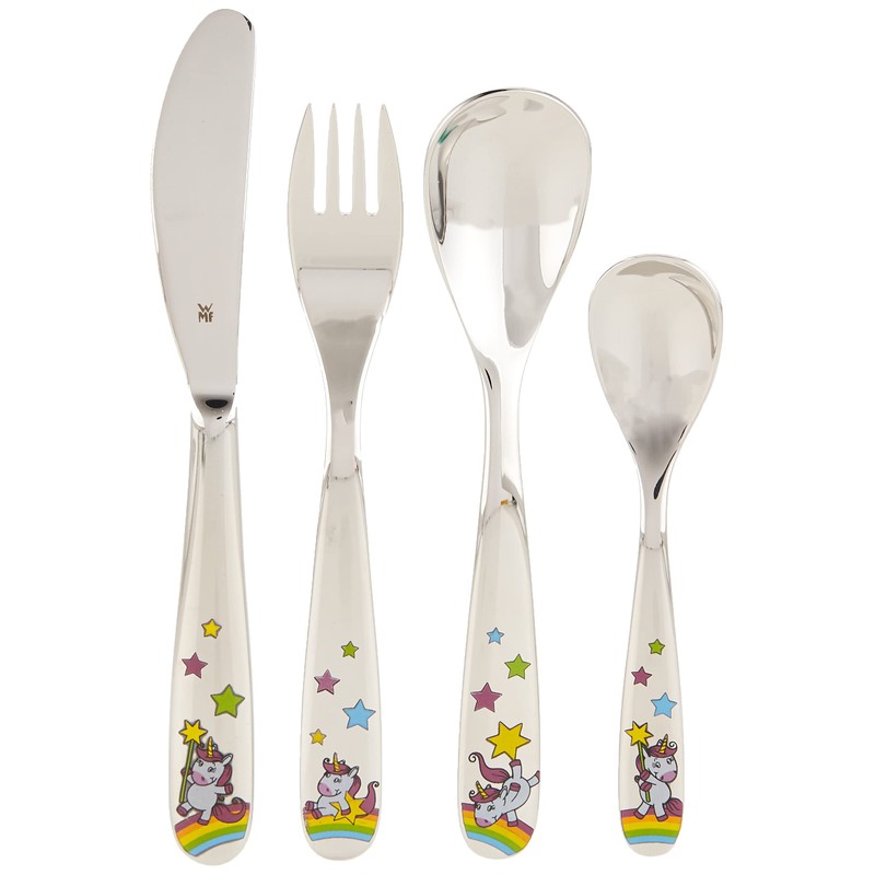 WMF Einhorn Kinderbesteck Set 4-teilig, Kinderbesteck Edelstahl, Kinderbesteck ab 3 Jahre, Cromargan poliert, spülmaschinengeeignet